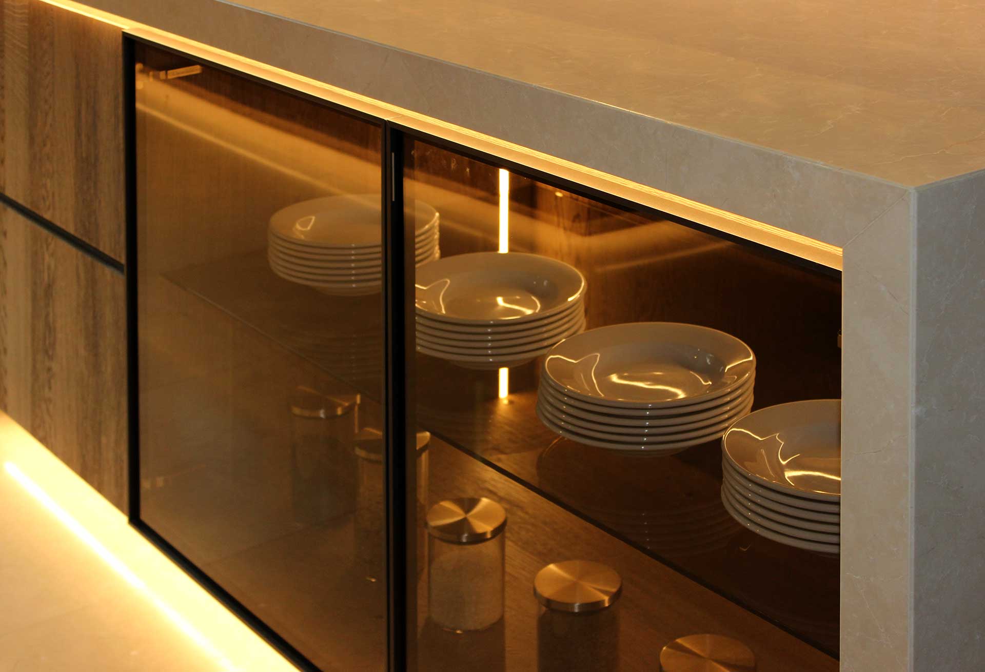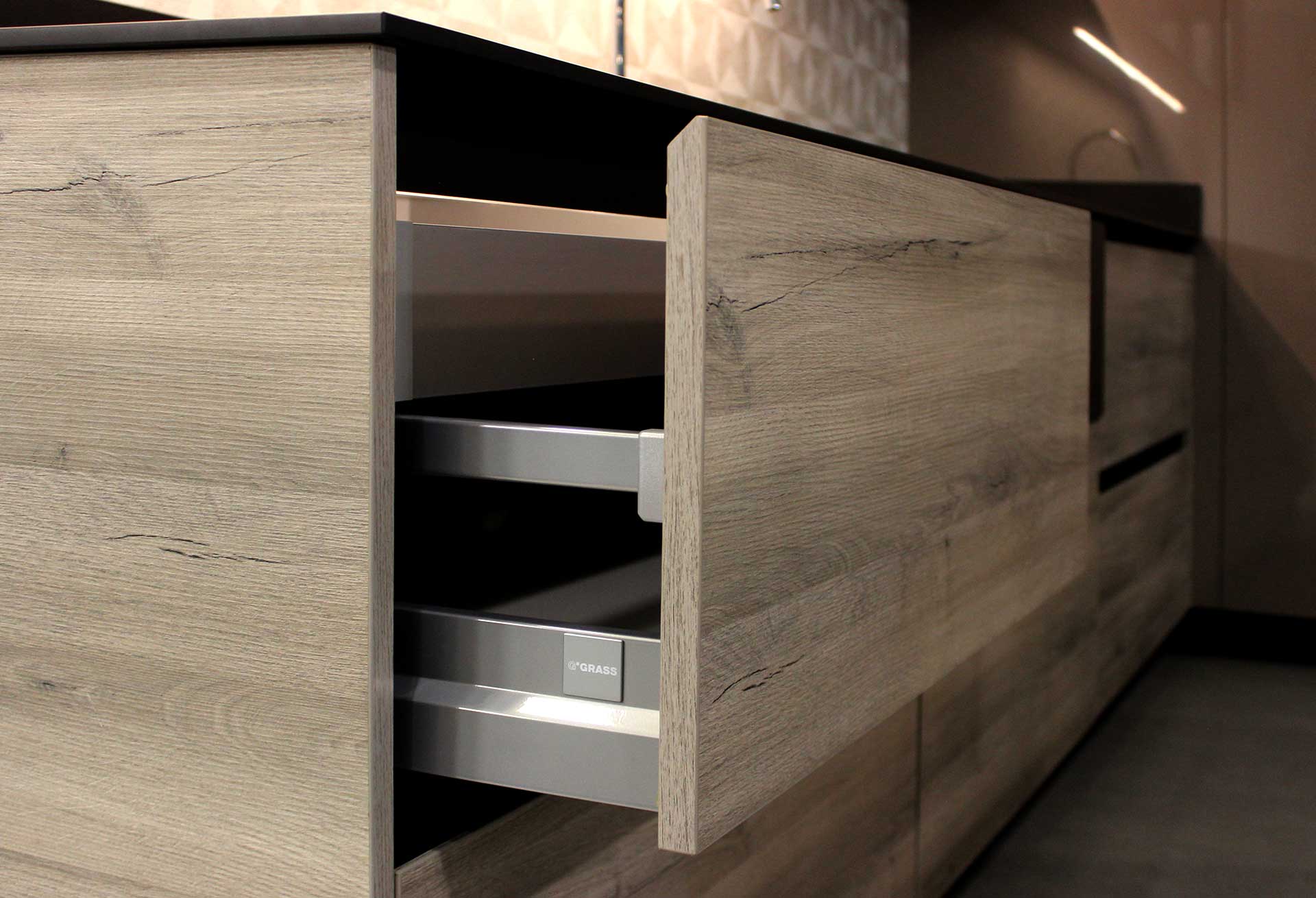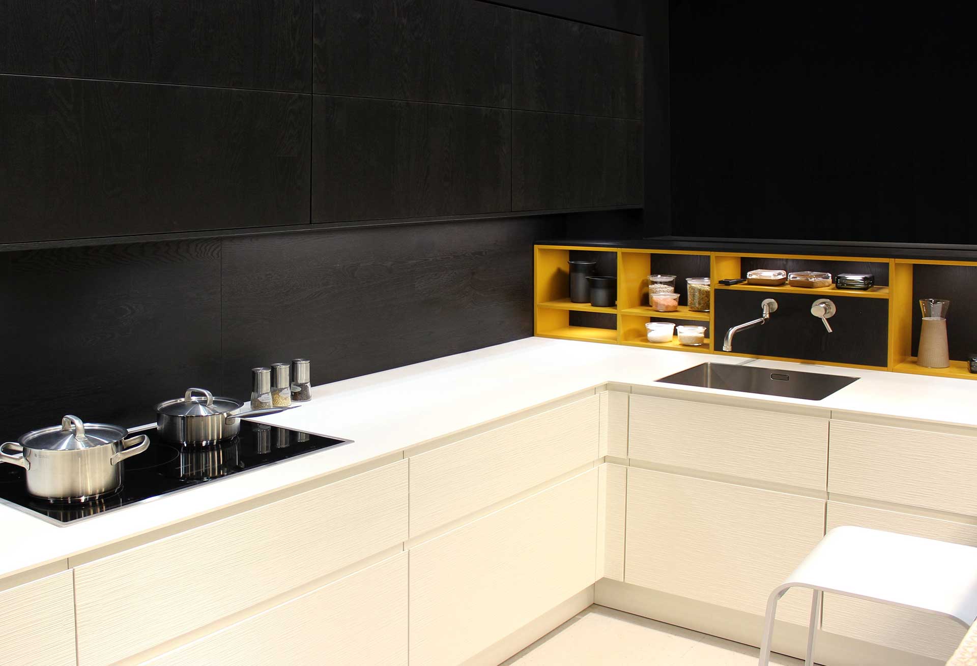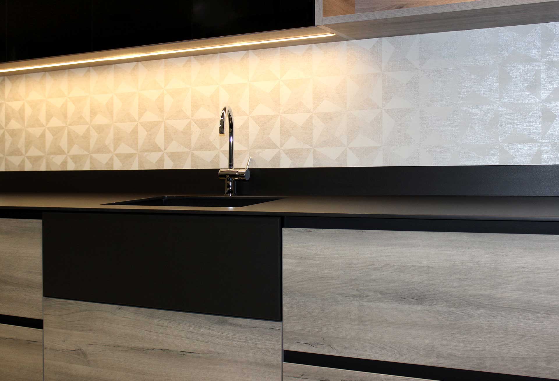 Lineare es lineal. Surge de un frente para muebles de cocina, caracterizado por la apertura mediante ranura, forma líneas rectas, creando detalles de diseño con armonía. El frente lineare se fabrica con un chaflán en la parte superior o inferior, perfilada a 45º, sistema de extracción y cierre manual desde cualquier punto, un mecanismo sobrio, sencillo, y funcional.