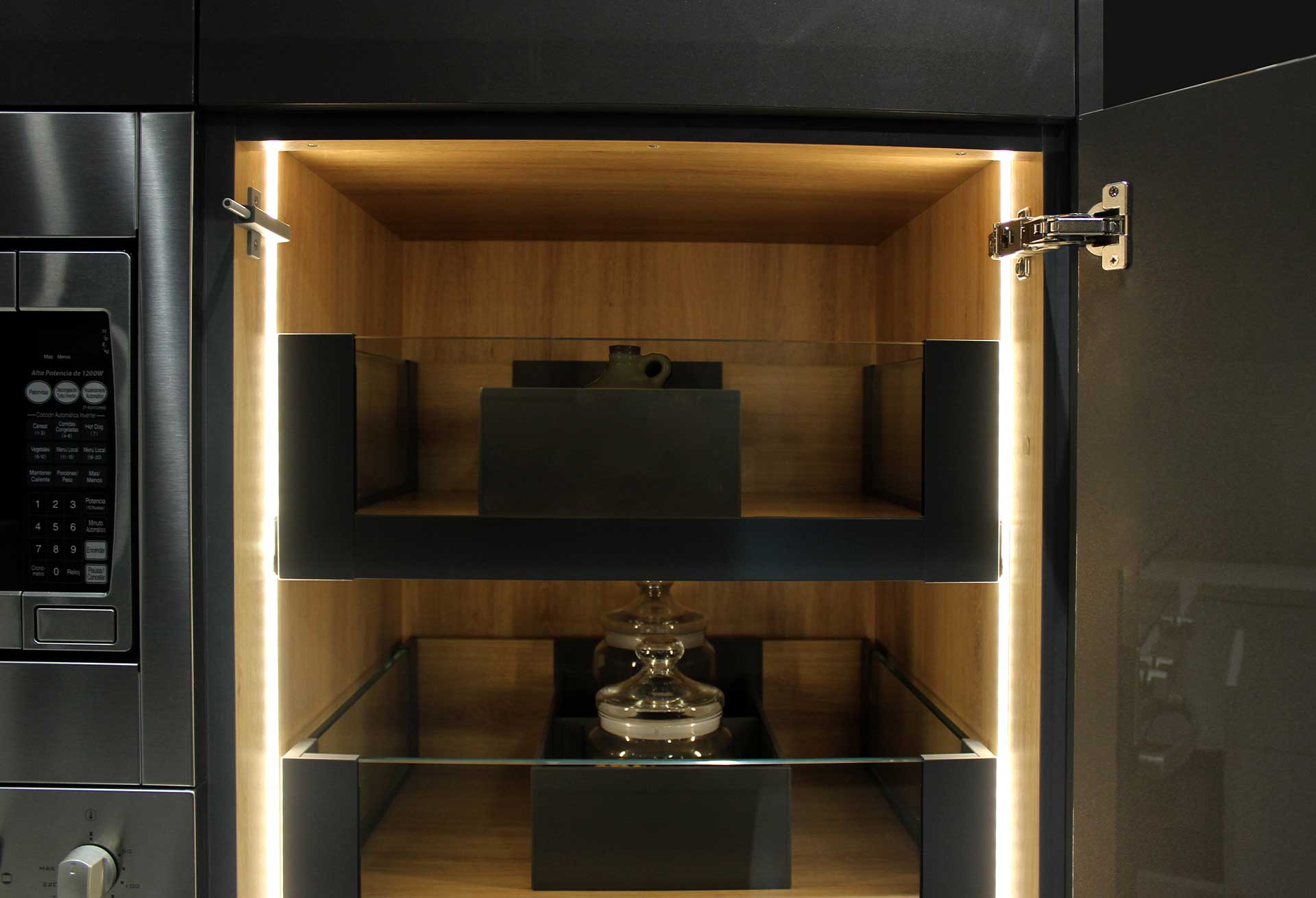 Lusso es lujo. Diseño de frentes para muebles de cocina, la ausencia de tiraderas, resalta la pureza en las líneas. Sistema discreto e innovador de apertura por expulsión y cierre, caracterizado por ser un elemento tecnológico, funcional y práctico, que dan paso a una nueva cultura.
